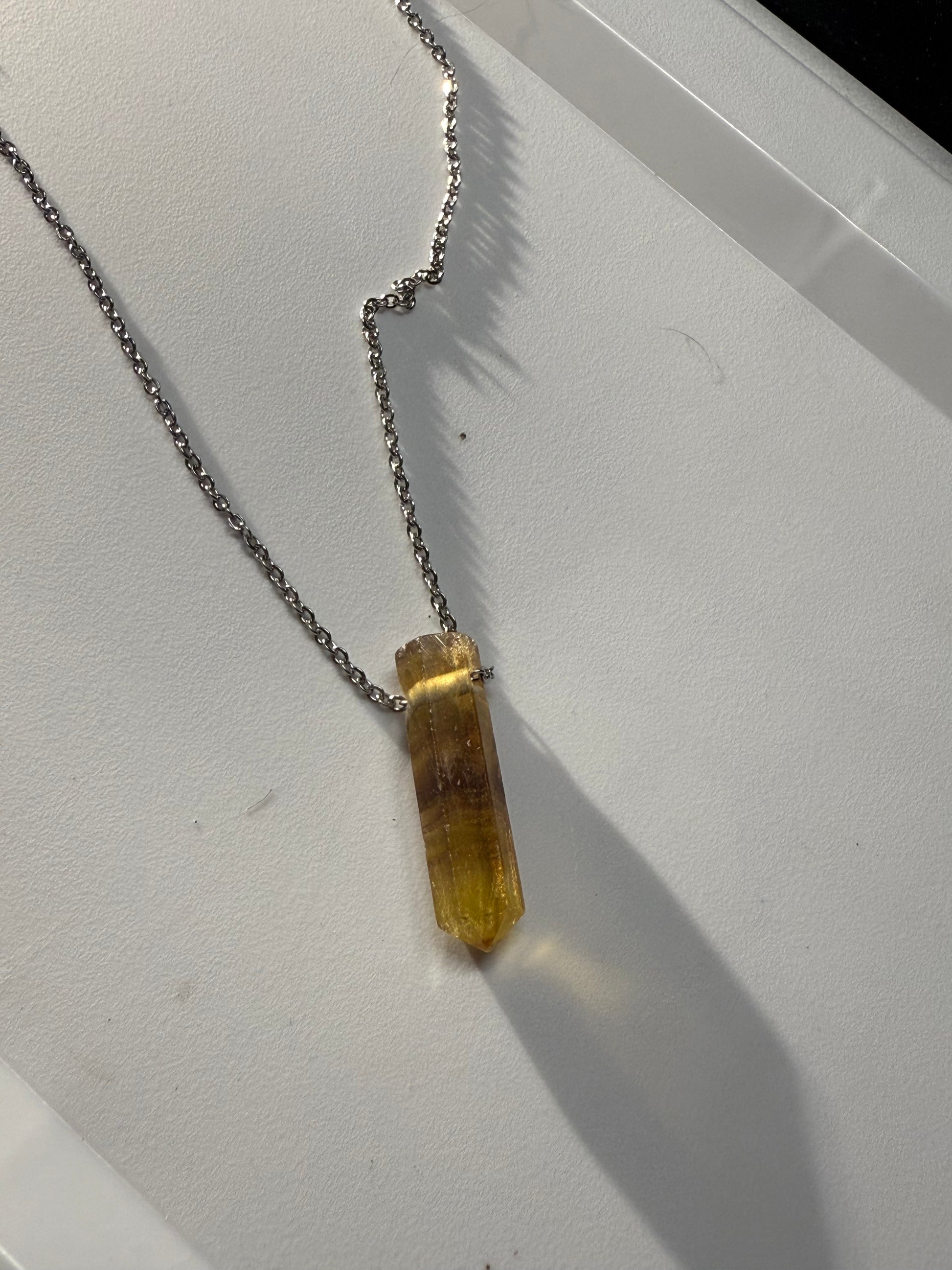 Vibrante lápiz artesanal elaborado con fluorita auténtica. Esta piedra multicolor con tonos púrpura, verde y azul es conocida como la piedra del genio, promoviendo concentración, aprendizaje y claridad mental.