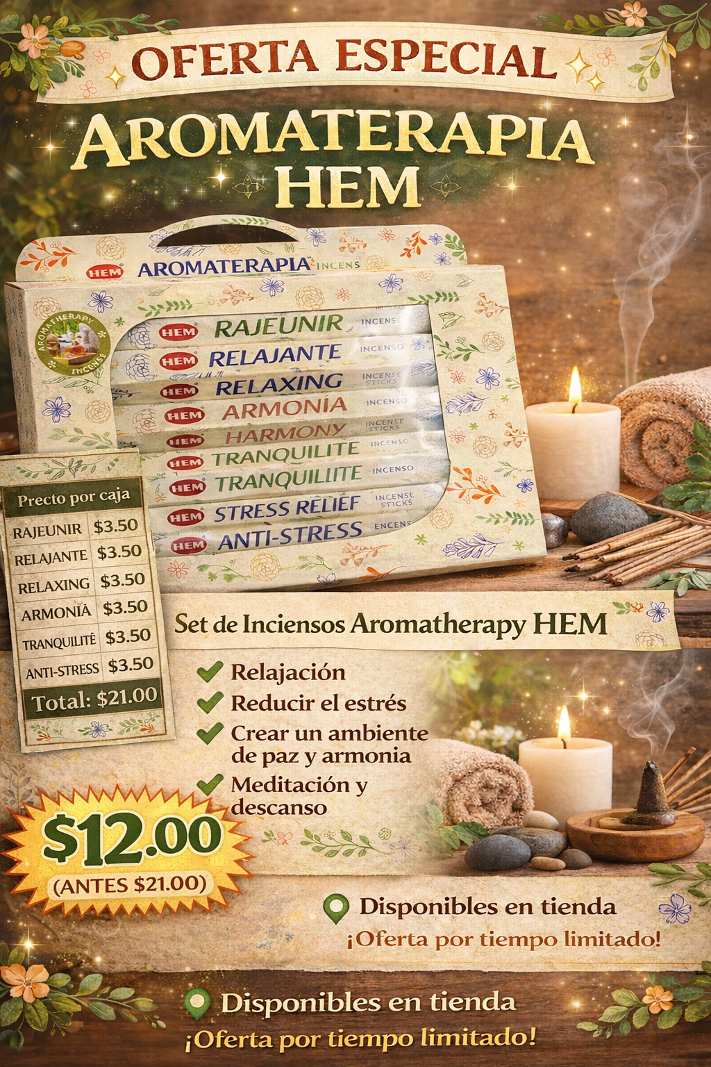 Set de Inciensos Aromaterapia HEM - 6 Fragancias